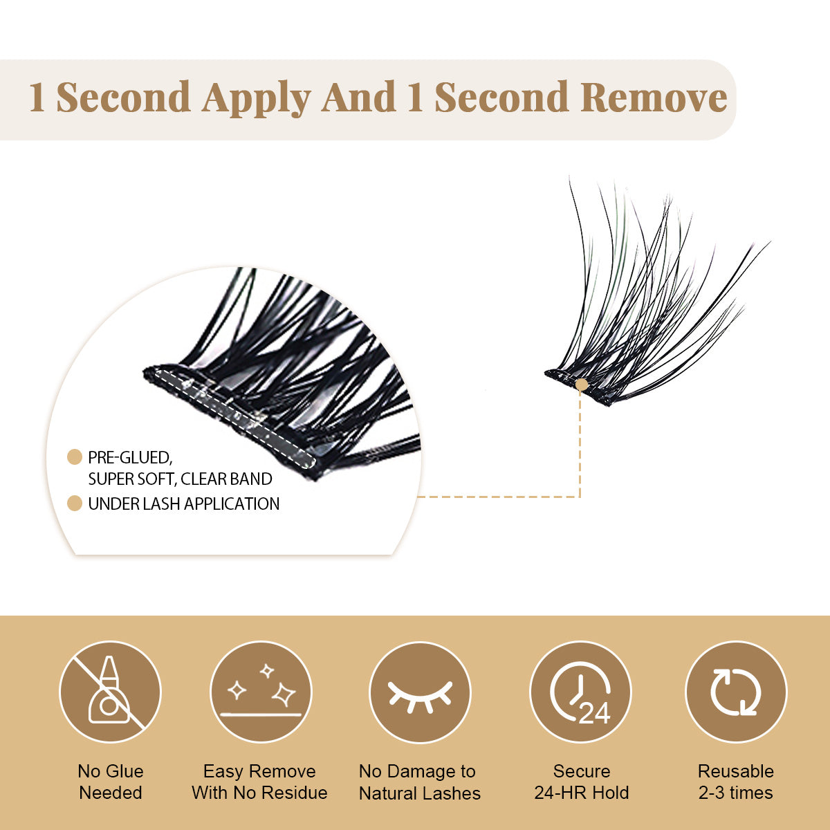 Easy Removal with No Residue, No Damage to Natural Lashes - Remove easily without any sticky residue, and zero damage to natural lashes.